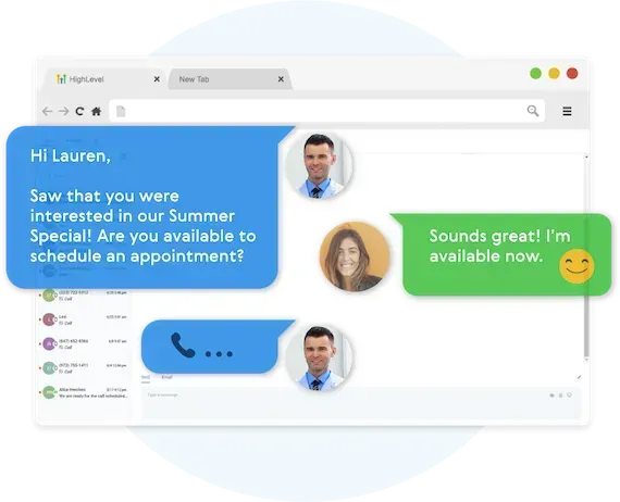 HighLevel allows you to connect with your leads through Phone Connect, Voicemail Drops, SMS/MMS, Emails, and even Facebook Messenger.
